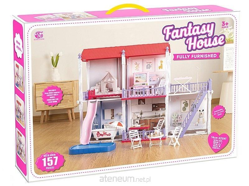 domek dla lalek, plastikowy, wy.po rozłożeniu 104x74x60cm, z meblami; 72x52x12cm