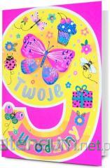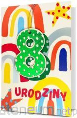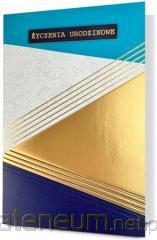 Kartka jest zdobiona opalizującą folią holograficzną, zawiera życzenia oraz kolorowy środek. W zestawie znajduje się koperta, kolorystycznie uzupełniająca się z kartką. Format złożonej kartki: B6