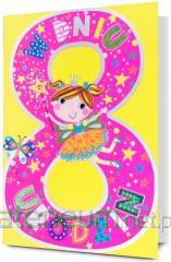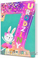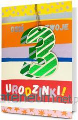 Kartka jest zdobiona opalizującą folią holograficzną, zawiera życzenia oraz kolorowy środek. W zestawie znajduje się koperta, kolorystycznie uzupełniająca się z kartką. Format złożonej kartki: B6