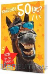 Kartka jest zdobiona opalizującą folią holograficzną, zawiera życzenia oraz kolorowy środek. W zestawie znajduje się koperta, kolorystycznie uzupełniająca się z kartką. Format złożonej kartki: B6