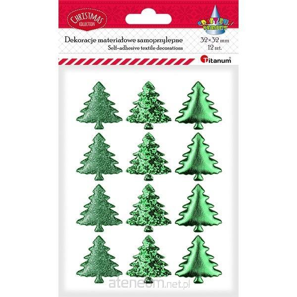 Dekoracje samoprzylepne materiałowe choinki PU 32x32mm 3 wzory: drobny brokat, duży brokat, gładkie złote 12szt.