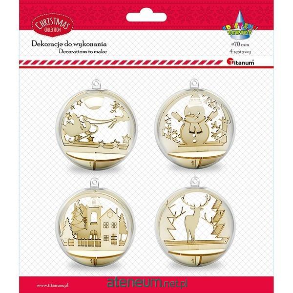 Zestaw do złożenia bombka akrylowa O70mm z drewnianym dekorem do umieszczenia wewnątrz 4 zestawy