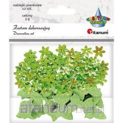 Cekiny kwiaty + naklejki mix jasnozielone 12szt