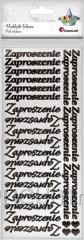 Naklejki foliowe napis Zaproszenie 2 wzory czcionki wymiary napisów: 9x70/18x70mm, 4 serduszka 10x9mm czarne 28szt.