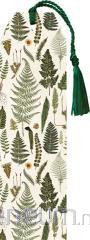 Pozłacana, papierowa zakładka do książki z ozdobną wstążką.