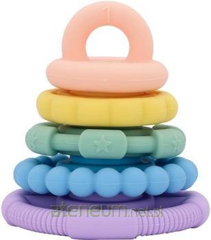 silikonowa wieża z kolorowych pierścieni pełniących funkcję gryzaków,