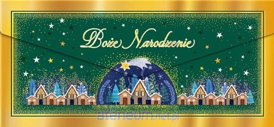 Ozdobna koperta na pieniądze, złocona i tłoczona. W zestawie wkładka z życzeniami.