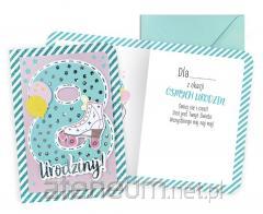 Kartka z wyjątkowymi życzeniami w środku, zdobiona metaliczną folią, kolorowa w środku i na zewnątrz, z białą kopertą w zestawie.