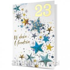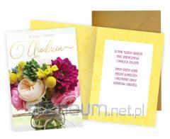 Kartka z wyjątkowymi życzeniami w środku, zdobiona metaliczną folią, kolorowa w środku i na zewnątrz, z białą kopertą w zestawie.