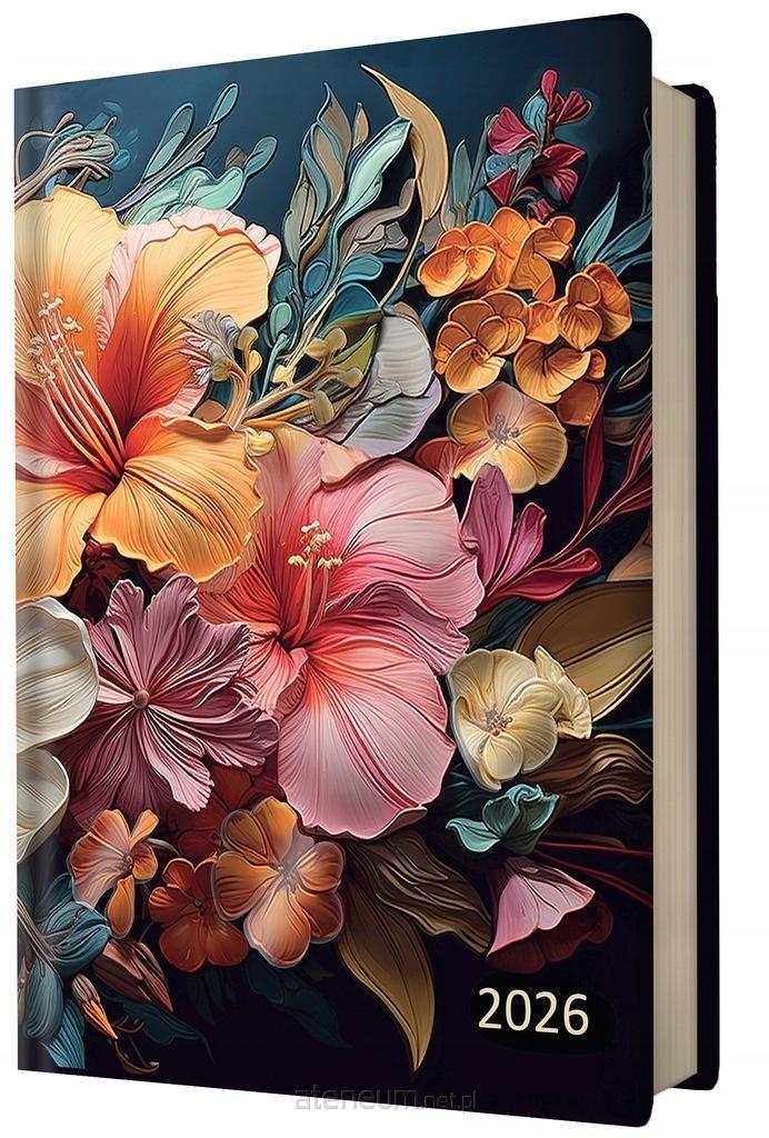 Kalendarz 2026 A5 dzienny z gumką kwiaty