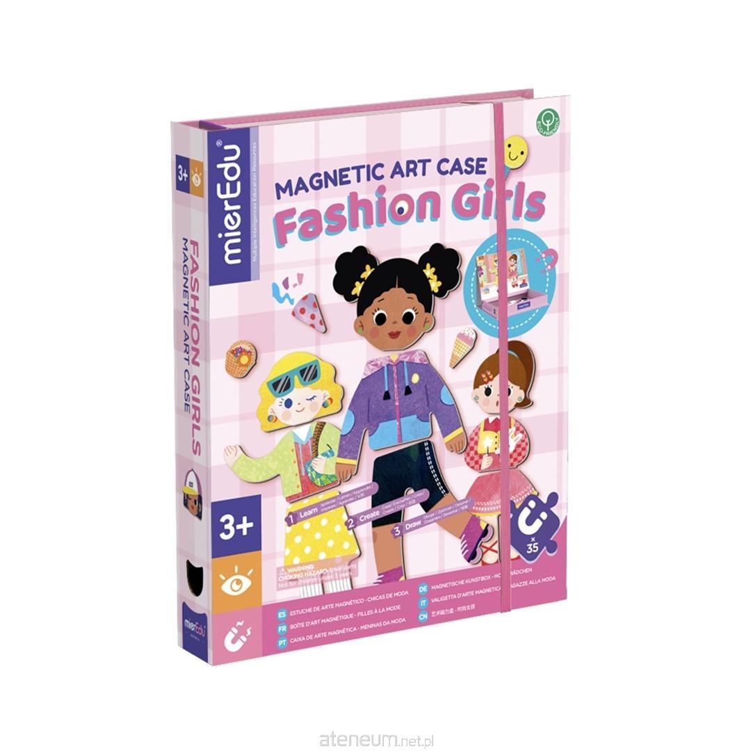 Zestaw magnetyczny Moda to idealna zabawa dla małych projektantów i projektantek! Po otwarciu pudełko zmienia się w magnetyczną, zmywalną tablicę, która staje się prawdziwym atelier. Dzieci mogą tworzyć modne stylizacje, mieszać kolory i wzory, rysować i dopisywać własne pomysły, przenosząc swoje modowe wizje na tablicę! To doskonały sposób na rozwijanie wyobraźni, kreatywności oraz koordynacji wzrokowo-ruchowej. Zabawa wspiera naukę rozpoznawania kolorów i kształtów, uczy estetyki i pozwala na wyrażanie siebie poprzez tworzenie wyjątkowych kompozycji. Dzięki ścieralnemu mazakowi dziecko może dodatkowo ozdabiać swoje projekty lub tworzyć zupełnie nowe wzory. Zestaw zawiera 10 kart z modowymi wzorami, 35 magnetycznych puzzli (garderoba i dodatki) oraz ścieralny mazak do rysowania. Dla dzieci pozyżej 3-go roku życia.