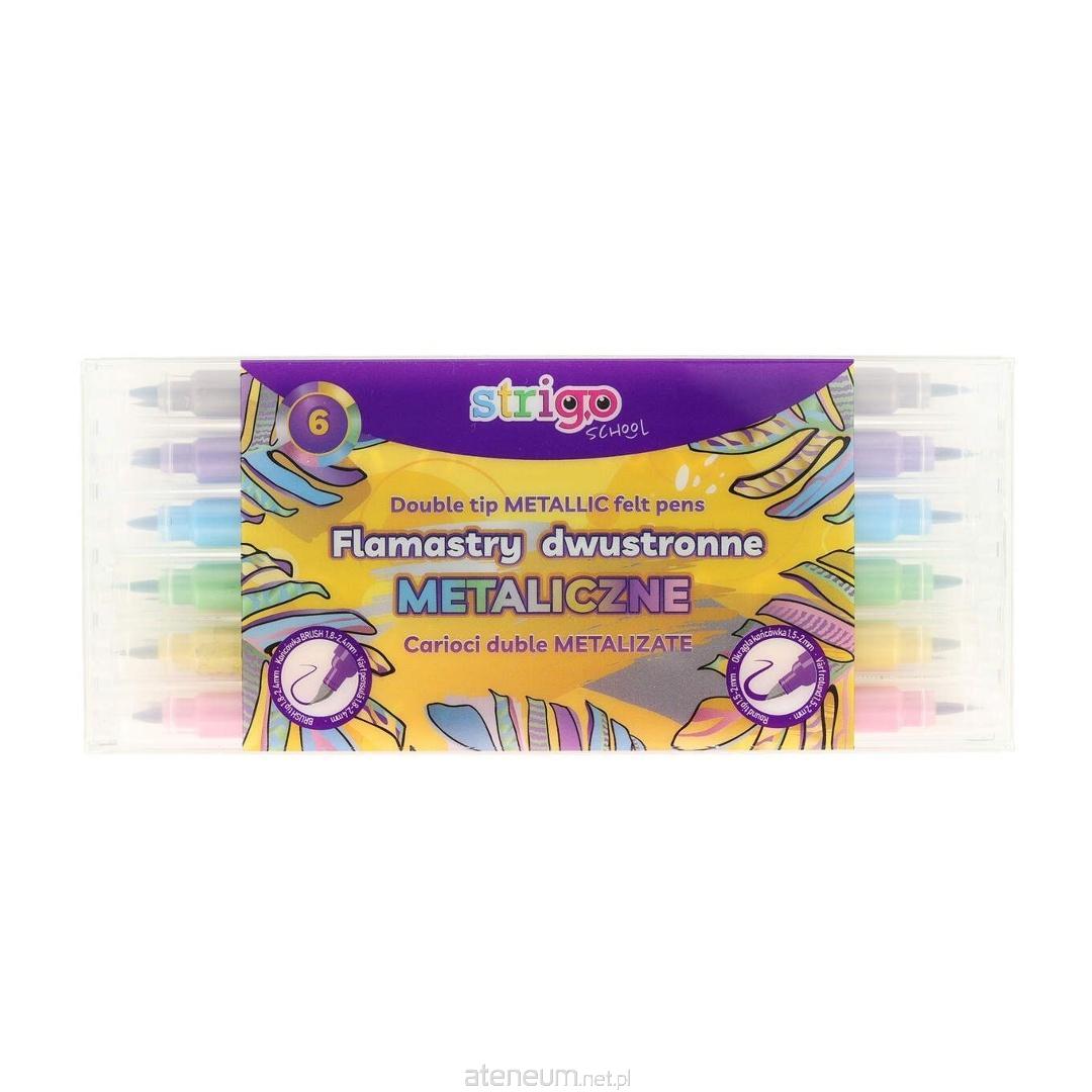 Flamastry dwustronne metaliczne 6 kolorów STRIGO