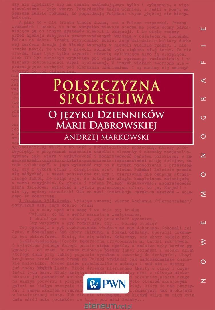 Profesor Andrzej Markowski od kilku lat zajmuje się Dziennikami Marii Dąbrowskiej, co pozwoliło mu zwrócić szczególną uwagę na język tego dzieła. Autor przygląda się słownictwu Dzienników: elementom potocznym, frazeologii, słownictwu przestarzałemu, ale także gramatycznej stronie wybranych fragmentów. Pokazuje techniki narracyjne, analizuje sądy Dąbrowskiej o języku jej własnych utworów literackich i o polszczyźnie w ogóle. Z tych sądów można zrekonstruować świadomość językową Dąbrowskiej. Analiza używanych w Dziennikach środków językowych wzmaga przekonanie o tym, że autorka nie tylko liczyła się z możliwością ich opublikowania w 40 lat po swojej śmierci, lecz wręcz pisała je z takim zamiarem.