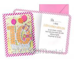 Karnet urodzinowy z tekstem. Papier: papier pocztówkowy 240 g Karnet jest zafoliowany, sprzedawany jest w zestawie z kopertą.