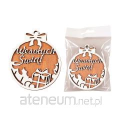 Bombka drewniana 3D Wesołych Świąt 3szt