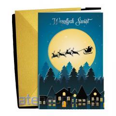 Kartka z życzeniami z dopasowaną kolorystycznie kopertą. Ozdobę stanowią konfetti i złocenie. Całość zabezpieczona folią typu"open".