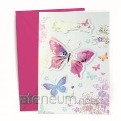 Kartka z życzeniami z dopasowaną kolorystycznie kopertą. Ozdobę stanowi folia hold. Całość zabezpieczona folią typu"open".