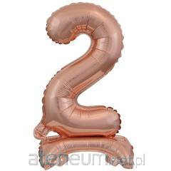 Balon foliowy mini cyfra 2 na stojaku różowe złoto