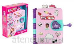 Pamiętnik w zestawie z długopisem z ozdobnym pomponem. Pamiętnik zamykany na kłódkę, wymiary: 12x18 cm.