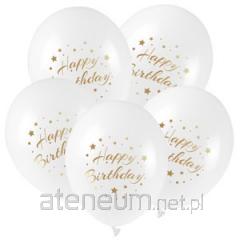 Balony ze złotym nadrukiem Happy Birthday 5szt