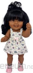 Głowa, dłonie oraz nogi do ud wykonane są z winylu, korpus miękki wykonany z materiału. Ubranko można zdjęć i prać.