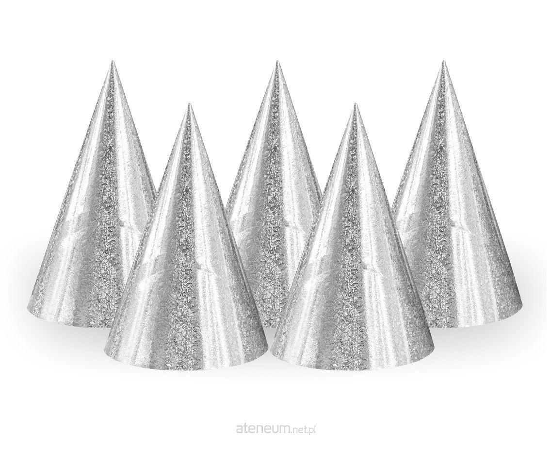 PAPIEROWE CZAPECZKI URODZINOWE, HOLOGRAFICZNE, SREBRNE