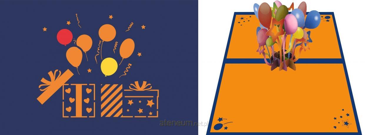 Na okładce znajdują się: prezenty i balony, wycinane laserowo.