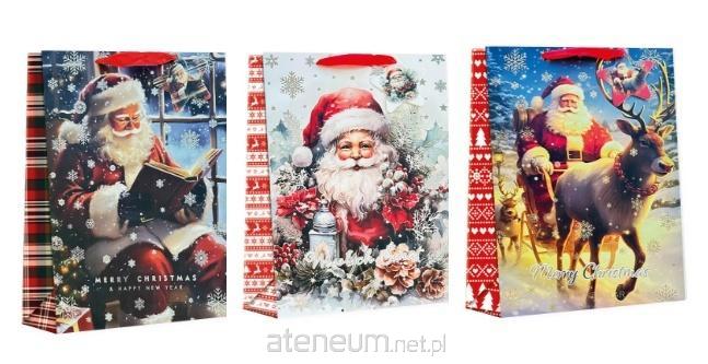 Torba prezentowa świąteczna TB-2 MIKOŁAJ, wymiar 22X30X10, 210g, pakiet mix 12szt wysyłana losowo