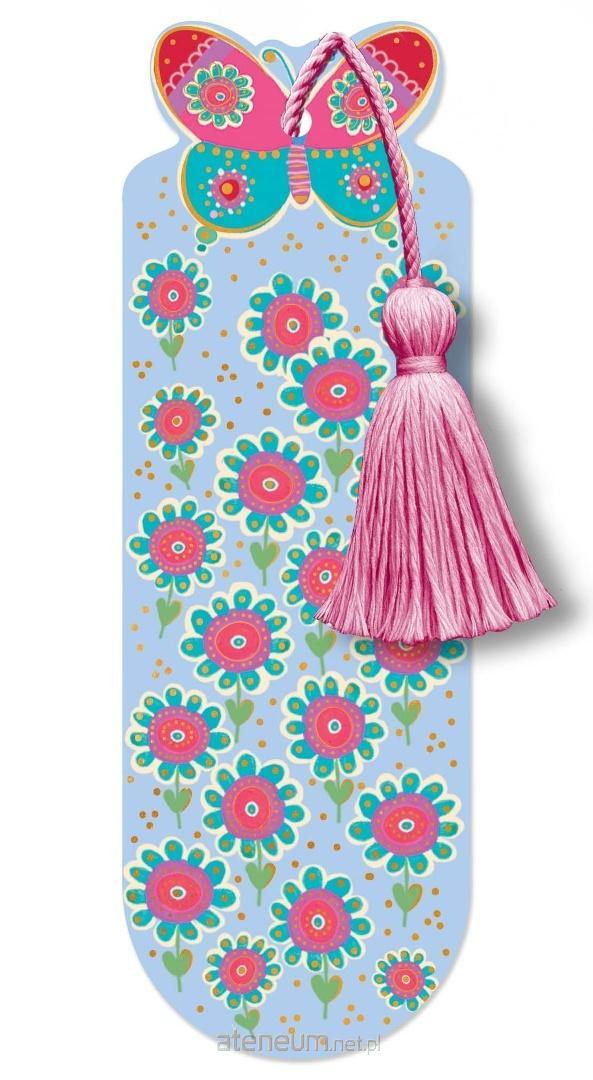 Złocona zakładka wykonana z grubego kartonu ozdobiona kolorowym chwostem.
