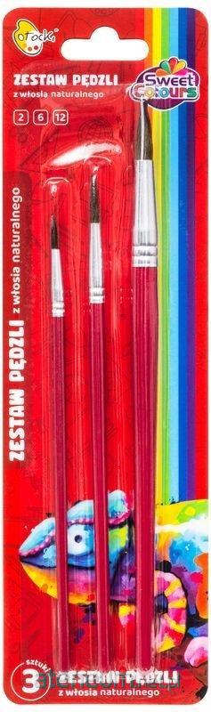 Pędzle włosia naturalnego nr: 2, 6, 12 3szt