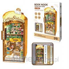 Miasteczko; w zestawie ramka w kształcie samochodu, samoprzylepny papier i sznurek, po ułożeniu puzzle można powiesić jako obrazek na ścianie