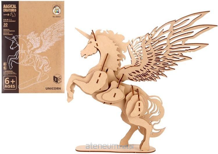 Drewniane puzzle 3D Jednorożec ze skrzydłami to wyjątkowy zestaw konstrukcyjny, który przeniesie Cię do świata magii, baśni i fantazji. Ten piękny model przedstawia mityczne stworzenie majestatycznego jednorożca z rozłożystymi skrzydłami, symbolizującego czystość, wolność i siłę wyobraźni. To niezwykła zabawka edukacyjna, która łączy precyzję, kreatywność i estetykę w jedną fascynującą całość.