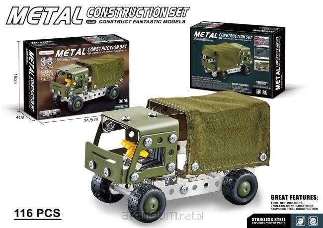 Odkryj fascynujący świat inżynierii i mechaniki z Metalowym Zestawem Konstrukcyjnym, modelem Autko. Ten komplet składa się ze 116 precyzyjnie wykonanych części, które pozwalają na stworzenie imponującego, wojskowego pojazdu ciężarowego. Zestaw jest świetną rozrywką edukacyjną, która angażuje umysł, poprawia koncentrację oraz rozwija zdolności motoryczne i wyobraźnię przestrzenną. Konstrukcja pojazdu wykonana jest z trwałych, wysokiej jakości elementów ze stali nierdzewnej, co zapewnia solidność i długowieczność gotowego modelu. Charakterystyczne cechy to metalowa kabina w kolorze oliwkowej zieleni oraz realistyczna, płócienna plandeka zakrywająca skrzynię ładunkową. Zestaw zawiera wszystkie niezbędne śrubki, nakrętki, blaszki oraz dedykowany zestaw narzędzi, umożliwiający natychmiastowe rozpoczęcie budowy. Instrukcja krok po kroku ułatwi złożenie modelu. Metalowy Zestaw Konstrukcyjny Autko to nie tylko zabawka, ale także satysfakcjonujący projekt dla każdego entuzjasty modelarstwa, który po złożeniu może stać się ozdobą kolekcji. Zestaw umożliwia budowanie niekończącej się liczby konfiguracji, zachęcając do eksperymentowania i twórczości.