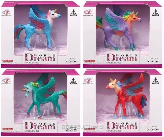 Odkryj magiczny świat World Dream dzięki naszym figurkom jednorożców ze skrzydłami. Ta wyjątkowa kolekcja Model Series to idealny prezent dla każdego fana magii i fantastyki. Figurki przedstawiają cztery różnokolorowe skrzydlate jednorożce: w kolorze błękitnym fioletowym turkusowym i intensywnie czerwonym. Każdy model charakteryzuje się dynamiczną pozą i jest misternie malowany z dbałością o najdrobniejsze szczegóły takie jak róg grzywa i upierzenie skrzydeł. Skrzydła mają piękne tęczowe gradienty co dodaje im uroku. Zestaw World Dream Model Series zachęca do kreatywnej zabawy i kolekcjonowania. Figurka wykonana jest z trwałego i bezpiecznego materiału. Produkt przeznaczony dla dzieci w wieku trzech lat i starszych. Każda figurka jest pakowana w estetyczne pudełko z okienkiem idealne do ekspozycji. Cena podana jest za jedną losowo wybraną sztukę jednorożca. Zbierz je wszystkie i stwórz własną magiczną krainę.