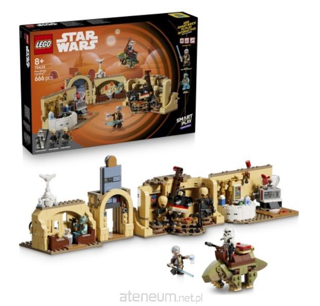 Zestaw kompatybilny LEGO Star Wars SMART Play: Kantyna Mos Eisley (75425) to interaktywna zabawka dla dzieci od 8 lat oraz dorosłych fanów Gwiezdnych Wojen. Ten szczegółowy model słynnej kantyny do zbudowania z klocków można podzielić na cztery moduły, co ułatwia zabawę. Dzieci mogą uruchomić kanapowe wyrzutnie, aby wystrzelić minifigurkę LEGO Star Wars, przygotować napój w barze, dołączyć do zespołu, aby zatańczyć na scenie, i wybrać się na przejażdżkę dewbackiem.