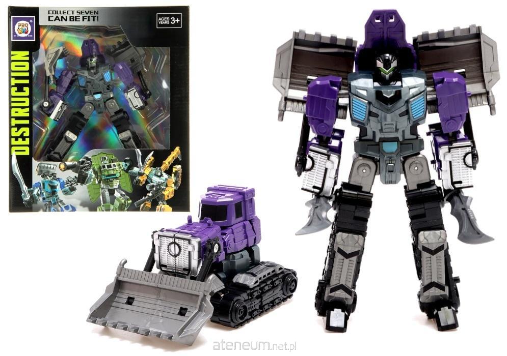 Model z serii Power Kong ? Destruction daje Ci możliwość sterowania maszyną, która łączy wygląd potężnego pojazdu gąsienicowego z futurystycznym designem robota bojowego. W trybie pojazdu masz przed sobą solidny spychacz o masywnej łyżce, realistycznych gąsienicach i charakterystycznej fioletowej kabinie. Kilka ruchów wystarczy, by przemienić go w pełnowymiarowego mecha wyposażonego w ruchome przeguby, szerokie panele pancerne i elementy, które wzmacniają dynamiczną sylwetkę robota.