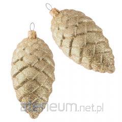 Zestaw obejmuje dwie okrągłe bombki z kokardą w kolorach białym i złotym. Bombki zostały wykonane ręcznie z plastiku i wyróżniają się unikalnym, efektownym designem pokrytym brokatem. Każdy element przygotowano z dużą dbałością o detale. Wymiary pojedynczej bombki to 60 mm. Bombki stanowią znakomitą ozdobę choinki oraz innych świątecznych aranżacji, a nitka umożliwia ich łatwe zawieszenie.