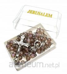 Różaniec składa się z gładkich, błyszczących koralików z hematytu. Koraliki są owalne i lekko skręcone, o wymiarach około 13x6 mm. Hematyt to kamień znany z właściwości uziemiających i ochronnych. Jego ciemny, metaliczny blask nadaje mu elegancki i uniwersalny wygląd, pasujący do każdego wnętrza.