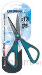 Nożyczki z ostrzami 3D w kształcie łuków pokrytych twardą powłoką non-stick, zapobiegającą przywieraniu substancji lepkich takich, jak klej. Bardzo wytrzymałe, odporne na wilgoć, rdzę i korozję. Nożyczki wyposażone w wygodną, gumową rękojeść ułatwiającą pracę. Przeznaczone do cięcia m.in.: zdjęć, tkanin, papieru i taśm klejących.