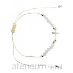 Urocza bransoletka na rękę, będąca jednocześnie praktyczną dziesiątką różańca. Wykonana z trwałego, regulowanego sznurka, dzięki czemu idealnie dopasowuje się do każdego nadgarstka. Dziesiątkę tworzy dziesięć barwnych koralików, które przyciągają wzrok swoją subtelnością. Centralnym elementem bransoletki jest metalowy krzyżyk o wymiarach 13x18 mm. Dodatkowym, subtelnym akcentem są małe, srebrne kuleczki, które pięknie połyskują i dodają bransoletce elegancji. Ta wyjątkowa bransoletka nie tylko ułatwia odmawianie dziesiątki różańca, ale również stanowi stylowy i radosny dodatek do każdej stylizacji.