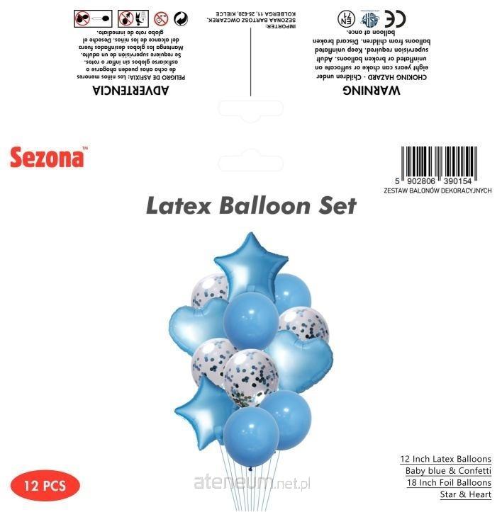 Zestaw balonów dekoracyjnych - błękitny z konfetti, 12 szt.