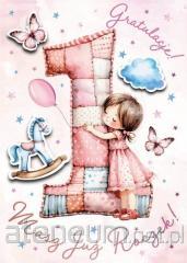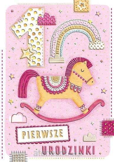 Karnet A5 Urodziny roczek dziewczynka - Konik