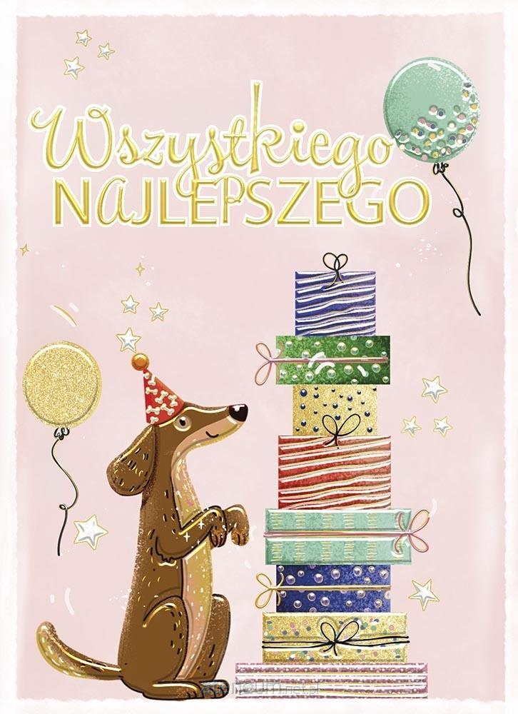 Karnet B6 Urodziny - Jamnik z prezentami