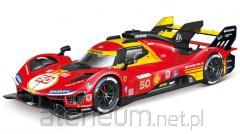 BOLID F1 Ferrari SF-24 (2024) #55 Carlos Sainz oryginalny produkt marki Bburago, oficjalny, licencjonowany wzór pojazdu, metalowy model z plastikowymi elementami, perfekcyjne odwzorowanie szczegółów. Model umieszczony na plastikowej podstawce. Wymiary: długość 31cm, szerokość 11cm, wysokość 6cm. Wymiary opakowania: 34,5 x 18 x 14cm. Bolid Ferrari SF-24 w specjalnym malowaniu na GP Miami 2024 wyróżniał się unikalnym designem, celebrującym 70-lecie obecności Ferrari w Ameryce Północnej oraz nowe partnerstwo z HP. Malowanie zawierało dwa historyczne odcienie niebieskiego:Azzurro La Plata i Azzurro Dino:które zdobiły skrzydła, pokrywę silnika, halo, lusterka, numery startowe i felgi, nawiązując do barw używanych przez Ferrari w latach 50. i 60. Czerwony kolor pozostał dominujący, ale niebieskie akcenty przywoływały wspomnienia bolidów i samochodów sportowych zespołu N.A.R.T. oraz kierowców, takich jak John Surtees. Kierowcy Charles Leclerc i Carlos Sainz wystartowali w niebieskich kombinezonach, a zespół zaprezentował specjalne stroje w odcieniu Azzurro La Plata. Malowanie to, wraz z powrotem żółtych pasków, podkreśliło zarówno dziedzictwo Ferrari, jak i nowoczesne podejście do innowacji.