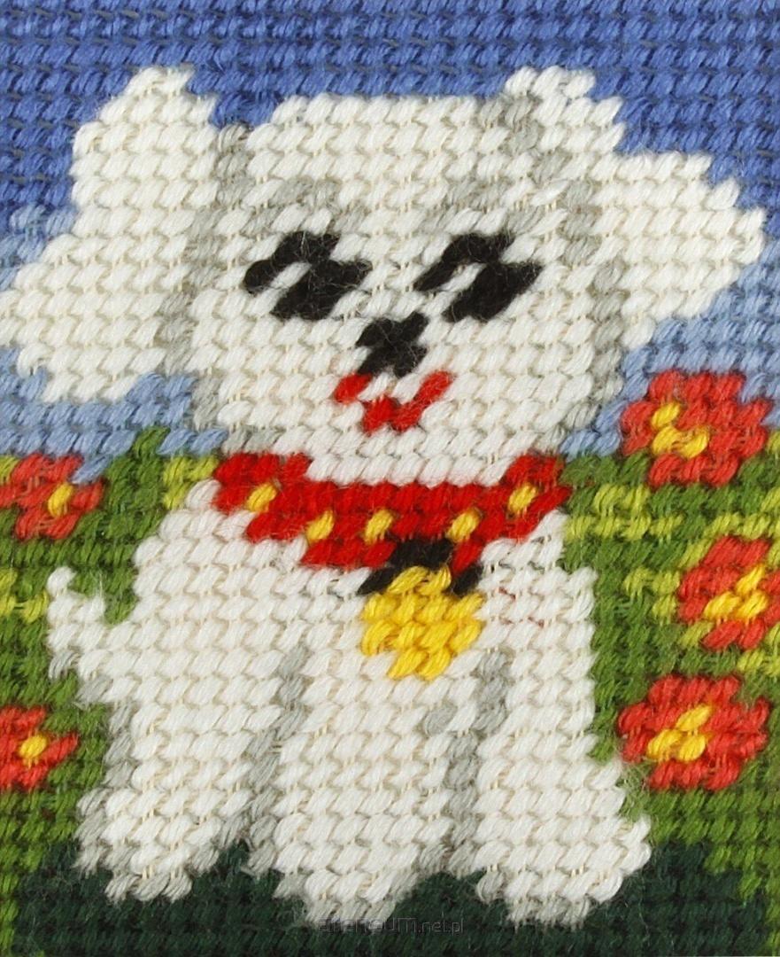 Zestaw do haftu z włóczką idealny dla dzieci i początkujących! Tkanina z nadrukiem, igła, włóczka i instrukcja w zestawie Wymiar haftu: 17 x 20.5 cm.