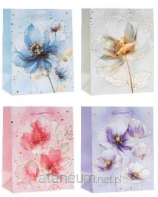 Torebka ozdobna matowa 18x23x10cm Kwiaty
