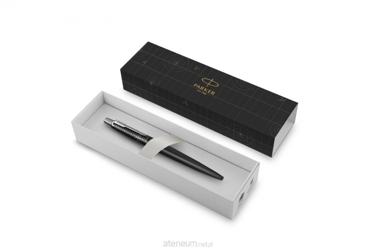 Długopis z kolekcji Parker Jotter XL Legacy of Flight, matowy czarny lakier z chromowanym wykończeniem, końcówka medium, niebieski tusz