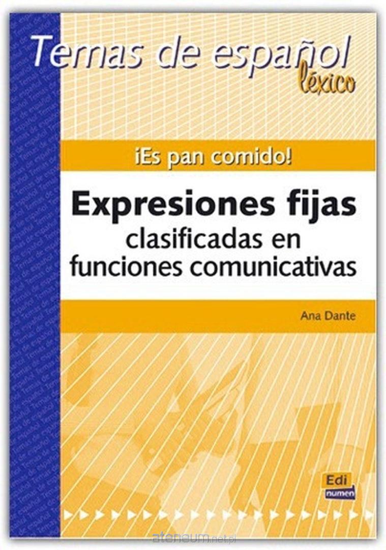 "Expresiones fijas clasificadas en funciones comunicativas" to ksiażka nalężaca do serii "Temas de espaol-Lxico", przeznaczonej dla wszystkich uczących się języka hiszpańskiego, którzy chcą poszerzyć swoją znajomość słownictwa. Zawiera ponad 200 wyrażeń idiomatycznych i związków frazeologicznych, używanych w różnych sytuacjach komunikacyjnych, uporządkowanych od najmniej do najbardziej formalnych. Książka może być wykorzystywana tak przez nauczycieli, jak i uczniów (np. chcących przygotować się do egzaminu DELE Bsico). Autorzy ksiązki wyrażają nadzieję, że przyswojenie jej treści okaże się dla użytkowników przysłowiową "bułką z masłem".