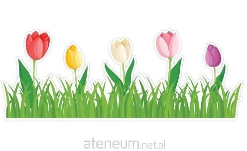 Zestaw składa się z 4 pasów tulipanów na trawie, które można złożyć w jeden ciąg - idealne do dekoracji szkoły i przedszkola.