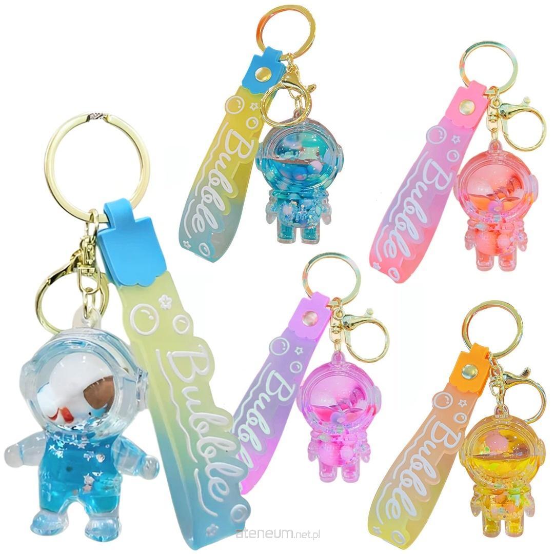 Każdy egzemplarz został zaprojektowany z dbałością o szczegóły. Do zestawu dołączony jest szeroki, elastyczny pasek silikonowy z wypukłym napisem "Bubble" oraz motywami gwiazdek i baniek. Całość wieńczy solidne zapięcie w kolorze złotym, składające się z klasycznego kółka na klucze oraz praktycznego karabińczyka, który umożliwia szybkie przepięcie gadżetu.